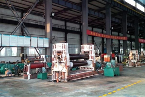 上圖為超力公司車間卷板機生產現場一角展示。