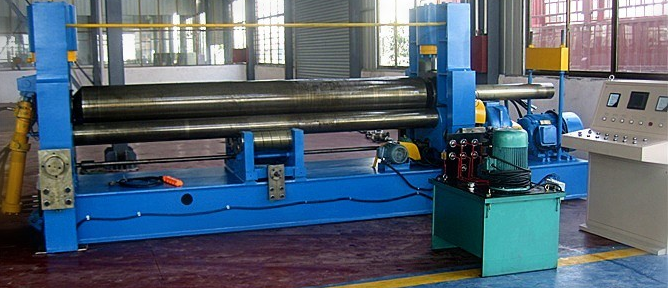 卷板機是對板材進行連續點彎曲的塑形機床,具有卷制O型、U型、多段R等不同形狀板材的功能。卷板機由于使用的領域不同,種類也不同。從輥數上分為三輥卷板機和四輥卷板機。三輥又分對稱式三輥卷板機,水平下調式三棍卷板機,弧線下調式卷板機,上輥萬能式三輥卷板機,液壓數控卷板機。從傳動上分機械式和液壓式。